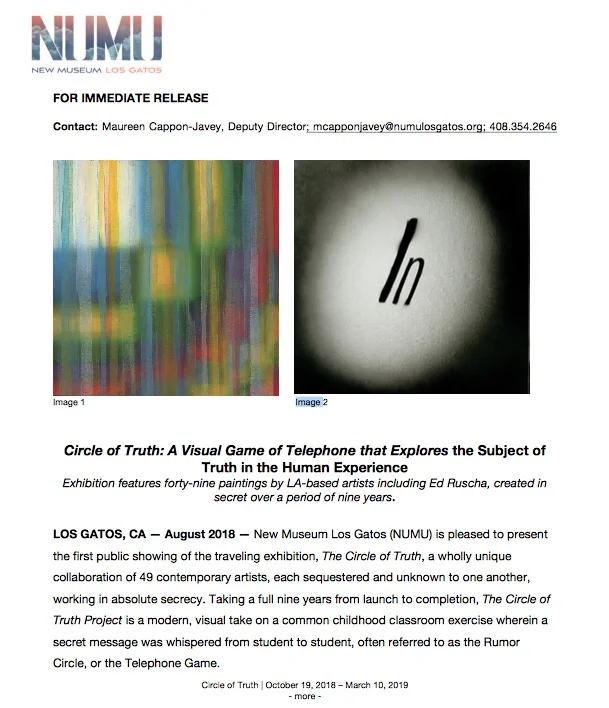 » “CIRCLE OF TRUTH” - NUMU - NEW MUSEUM LOS GATOS; curated by Shane Guffogg and Laura Hipke.